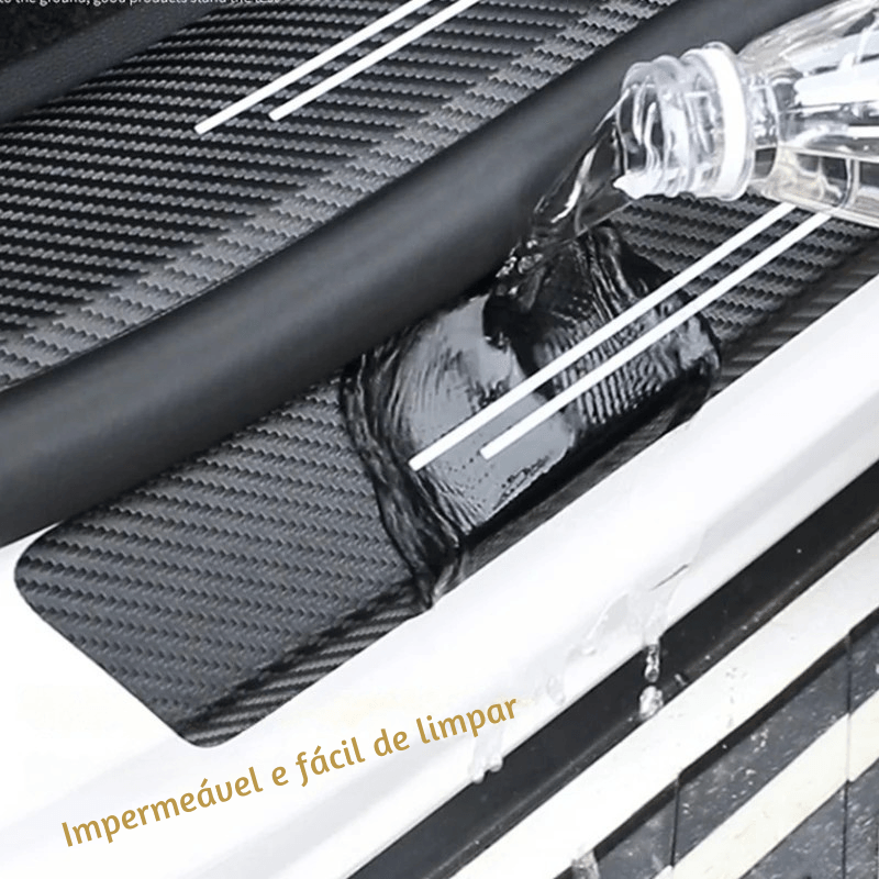 A nova Tira de Proteção para Soleira de Porta, feita com couro sintético e acabamento imitando fibra de carbono, oferece proteção real contra riscos, ferrugem e desgaste da pintura, ao mesmo tempo em que transforma o visual da entrada do veículo com um toque esportivo e sofisticado.
