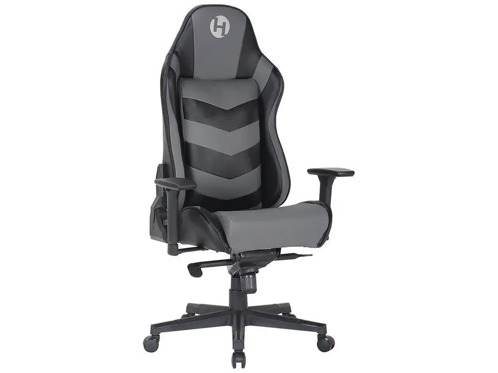 Design gamer sofisticado: Acabamento em poliuretano com detalhes em fibra de carbono, nas cores preto e cinza, unindo estilo e resistência.